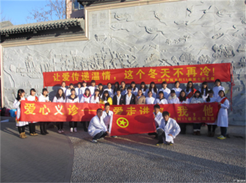 2013年11月12日下午,承德市疾控中心、承德医学院附属医院社区服务站以及我校护理学院2011级本科第七团支部在承德市西大街头道牌楼社区广场举办了以“爱心义诊 健康同行”为主题的团日活动。活动中同学们分为两组,一组积极给居民发放宣传手册并向居民讲解营养保健及医疗健康等知识;另一组义务给居民们测量血压、心率、脉搏,并指导居民们健康合理饮食、有效预防疾病。通过此次活动,同学们不仅运用专业知识帮助社区居民发现自身存在的健康问题,让他们做到早发现、早预防、早治疗,而且还展示了医学生风采,弘扬了新时代大学生的实践服务精神。
