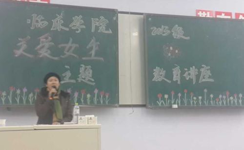 12月2日下午,临床学院邀请牟兰荣教授在教学楼411教室举办了以“关爱女生”为主题的教育讲座,辅导员程红菲老师及临床学院2013级全体女生参加了此次讲座。