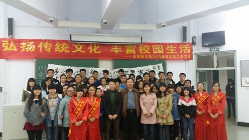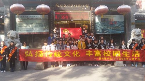 2014年10月18日,我校基础医学院2013级临本第二团支部“传统文化进校园”主题团日活动在民族民俗博物馆举行。此次活动,特邀党委办公室主任于淑华、校长办公室副主任梁海成、年级辅导员李庆林作指导,校外著名艺术家石俊凤老师也出席了此次活动。 17日下午,梁海成老师为团支部成员进行了书法知识讲座,分别讲解了楷书、行书、草书、隶书等书法艺术相关知识,并生动幽默地与在场同学进行了书法知识的交流。活动最后,于淑华老师为“传统文化进校园”活动做动员讲话,同学们纷纷表示,必将努力学习,继承优秀传统文化。18日,在李庆林老师的带领下,全体团支部成员到承德市民族民风博物馆进行参观学习。著名剪纸艺术家石俊凤老师亲自指导同学们学习剪纸艺术,并免费为同学们提供剪纸材料及用具。通过此次活动,同学们不仅制作了属于自己的剪纸作品,更深切体会到剪纸艺术的神奇魅力。 参观学习传统文化之旅,使团支部成员提升了自身文化素质修养与精神道德品质,使中国传统文化真正走入校园,走入同学们心中。同学们表示将继续深入学习党的十八大精神,努力宣传博大精深的传统文化。