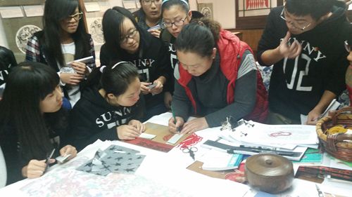 著名剪纸艺术家石俊凤老师亲自指导同学们学习剪纸艺术