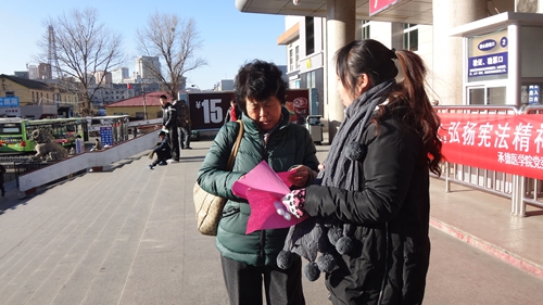 团支部成员发布宣传单