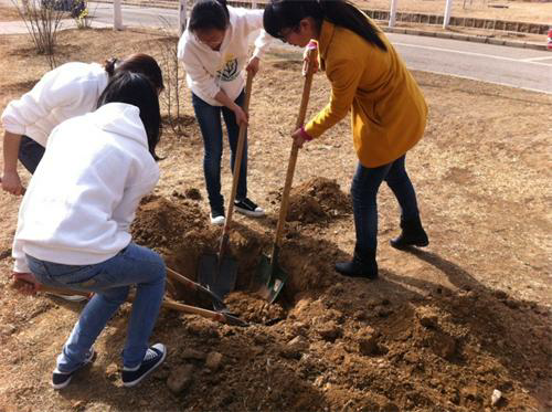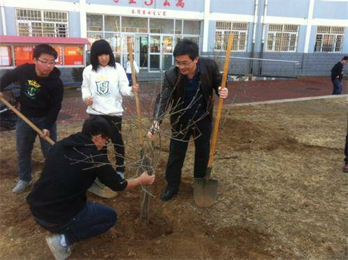 2014年3月29日上午,基础医学院2013级第三青年志愿者服务队在6号公寓前开展以“植树承医 守护绿意”为主题的植树活动。学生处副处长张文军和年级辅导员李庆林带队,后勤管理处的相关人员及全体志愿者共同参加此次活动。 活动中,志愿者们在后勤管理处绿化办工作人员的指导下积极地完成挖坑、种树、浇水等一系列活动。张文军表示,此次志愿者活动意义深远,多年后大家回归母校时,定会为自己亲手描绘的这抹色彩而感动。 活动结束后,带队老师和全体志愿者合影留念,共同记录下这美好的时刻。此次活动为建设绿色校园献出了一份力量,送上了一份绿色的祝福。