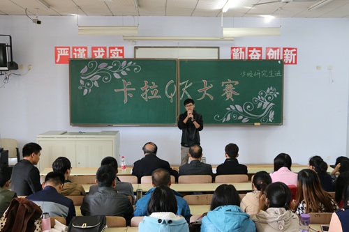 2015年10月24日上午,研究生院卡拉OK大赛在教学楼409教室举行。我校教师杨铁成、校学生会副主席王建辉担任本次大赛评委。我校研究生学院党总支副书记李德臣出席活动,百余名同学观看了比赛,来自各个班级的12位选手参与。 在动感的旋律中,比赛正式拉开帷幕。一曲《你那么爱他》拨动了现场观众心中爱的琴弦,抱着吉他轻声吟唱着的《滴答》萦绕于耳,绵绵爱意悠悠情长是每个人心中的《小情歌》,激昂澎湃的《甘心情愿》被演绎的淋漓尽致,小提琴与吉他的联袂演奏更是一场视听盛宴。美妙的旋律回荡在比赛场上,观众们的加油声此起彼伏,比赛精彩纷呈,高潮迭起。赛后评委老师杨铁成为选手们做了精彩点评,激励选手们再接再厉。经过激烈的角逐,暴海洋摘得桂冠,并将同其他优秀选手一起代表研究生院参加校园歌手大赛。 此次比赛为同学们提供了一个展示才华的舞台,对繁荣校园文化生活、丰富文化艺术节的内容、营造健康向上的文化氛围起到了重要作用。