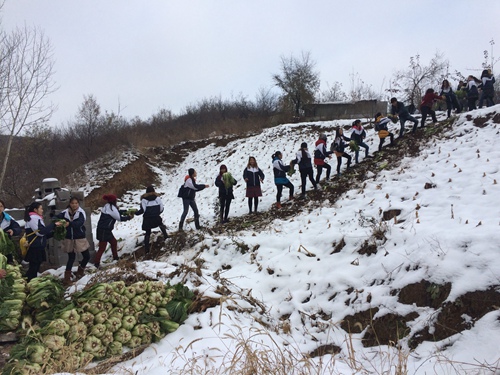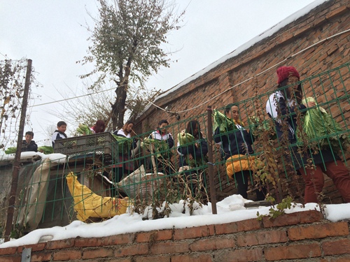 志愿者帮忙搬运白菜