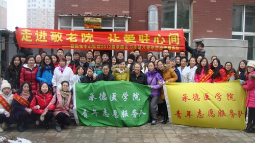 2015年11月7日上午,临床学院2012级临本第八青年志愿者服务队开展了以“走进敬老院 让爱驻心间”为主题的志愿者活动,此次活动由朝阳市中心医院科教科刘春光老师和丁黎艳老师带队,志愿者服务队全体成员参与其中。 今年全国敬老月的总主题为“关爱老人 构建和谐”,服务队利用在朝阳市中心医院见习的课余时间,在老师带领下到朝阳市双塔区爱心敬老院为老人们送去了温暖。活动分别在活动室与老人房间进行。抵达敬老院后,志愿者们分组将活动较为便利的老人请到日常活动室。首先,刘优院长给大家讲解了敬老院的历史及日常活动,表达了对志愿者的欢迎及对此次活动的支持,叮嘱志愿者今后要继续发扬尊老爱幼乐于奉献的优良品德,认真学习专业知识回馈社会。之后志愿者代表讲解了与老人身心健康密切相关的问题,例如长期吃降压药的注意事项、脑血栓病人的护理保健、提高睡眠质量的方法等,并教老人们及敬老院服务人员一些实用的推拿按摩手法,还为老人表演节目。老人们非常高兴地和志愿者们互动,并集体唱歌表达内心的喜悦,现场氛围十分融洽。接下来志愿者到房间内陪伴卧床老人,与老人聊天、给他们唱歌、削水果、梳头、剪指甲等,另外,志愿者们还在老师的指导下为老人量血压,很多老人流下了感动的泪水。其中爱心之家有一对老夫妻,他们在敬老院已经居住了八年,由于丈夫行动不便没能听到讲解,于是志愿者来到屋里看望并结合老人病情讲解医学常识。 此次活动通过与老人互动,进一步激发了大学生对老人的关爱意识,充分发挥了大学生关心弱势群体、营造和谐社会的作用,同时向老人们宣传医疗保健知识,体现医学生的特色,使大家将专业知识学以致用发挥所长,此次志愿活动长期开展,继续将温情和感动带给需要帮助的人,并号召更多的爱心人士参与其中。