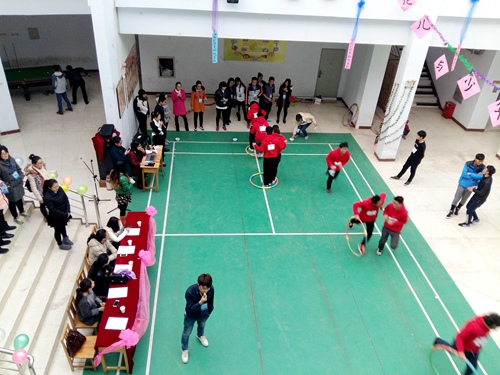2015年11月15日下午,护理学院学生会体育部在大学生活动中心举办了“花儿与少年之创赞纪”为主题的趣味运动会。护理学院本科团总支副书记、2013级护理学本科辅导员魏荣荣,护理学院2014级辅导员齐新玉、护理学院学生会全体学生干部、护理各年级代表队和部分学生代表共计100余人参加了此次活动。 在学生会体育部成员周密细致的策划和紧锣密鼓的准备下,从初赛25个参赛队伍中最终选出6个代表队晋级决赛。总决赛的6队选手历经半个月的刻苦训练,凭借自己对运动的热爱,给现场所有人员带来了一场视觉盛宴。 伴随着主持人致词,本次活动拉开了序幕。首先进行的是第一个环节“爱心速递”,期间运动员犯规被裁判员惩罚转象鼻子,以及参赛队员在趾压板上行走时的声声尖叫,得到了现场人员不断的欢呼声。第二个环节为“青蛙部队”运乒乓球限时赛,每队四只“青蛙”通过移动两个荷叶,在相同一段距离内运送乒乓球。如此有趣刺激的游戏环节使两位老师也跃跃欲试,与观众也进行了一场友谊赛。随后,因为观众太过热情,由学生会成员以及现场观众组队给大家带来了一场儿时的游戏“老鹰捉小鸡”。为时15分钟的互动环节结束后精彩比赛继续进行,更为激动人心的第三个环节为“进击吧!巨人!”。此环节为各代表队成员之间力气的较量。在呐喊声和掌声的伴随中,此次活动接近了尾声。最后进行的是“躲避球”,每支队伍分别派两名选手站到一定区域内另外两名站在场外向场内扔皮球,不幸被球碰到的选手会被淘汰,直至最后一名选手作为本环节的冠军。活动的最后,魏荣荣老师和齐新玉老师分别对本次活动进行了总结和点评,并为获胜队伍颁发奖品。 此次趣味运动会丰富了护理学院学生的校园生活,更好地展示了护理学院的精神风貌,增进了师生情谊,并且锻炼了身体,增强了体质,树立了积极向上、健康阳光、刻苦勤奋、勇担重任的时代风尚,充分展示我校学子朝气蓬勃,奋发进取,敢于追梦的精神。