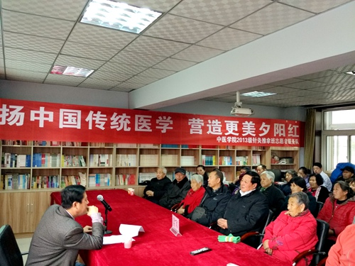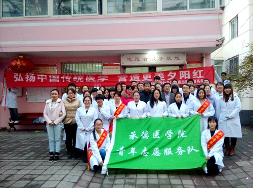 为发扬国医传统,关爱老人健康,承德医学院中医学院2013级针灸推拿班志愿者服务联合离退休第五党支部以更贴近生活,更接地气的方式开展了“弘扬中国传统医学 营造更美夕阳红”志愿活动。 2015年11月13日14:00,该志愿者服务队在承德市双桥区文庙社区举行了中医养生知识讲座。志愿服务队有幸请到承德医学院中医学院院长、党总支书记梁广和教授为社区老人传授贴近生活的养生小技巧。梁广和教授将治未病的中医养生思想渗透到整场讲座中,并强调辩证看养生,养生要有针对性的重要性。随后,志愿者服务队邀请到承德医学院中医学院院长书记梁广和、肛肠医院闫元杰、中医学院针灸推拿教研室张银娟、王玉满及中医临床教研室杜英杰为社区老人进行义诊。义诊设有中医内科、针灸科、推拿科等,并免费为老人进行量血压,测血糖等服务。面对前来就诊的老人,师生们仔细检查,详细询问,耐心解释,对病开方。受到社区居民的一致好评。本次活动共诊病100余人次,免费量血压、测血糖共150余人次,累计花费800余元。活动受到承德市电视台的报道。 此次活动,将践行社会主义核心价值观、传承敬老爱老文化以及研习祖国传统医学有机的结合起来,使全体志愿者受益匪浅。志愿者们发挥专业优势,跟随义诊老师学到许多临床技能与经验,将课本知识运用到实践中去,通过提倡健康生活方式,宣传健康理念,促进健康老龄化,让传统医学在社会公益中体现出独有的社会价值。