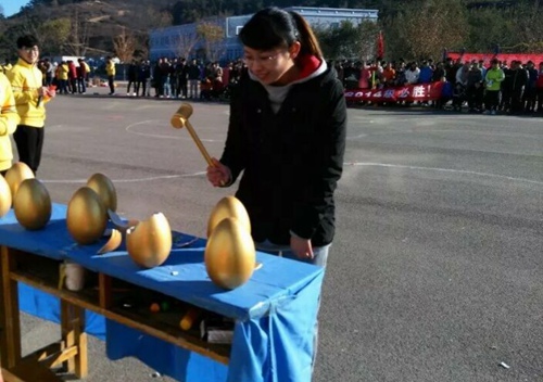2015年10月31日上午,由基础医学院学生会主办的趣味运动会在1号公寓前篮球场拉开了序幕。基础医学院辅导员翟冰峰,丁宁,李庆林,基础医学院2013级、2014级、2015级代表队参加了活动。 由武术社带来的武术表演,行云流水,刚劲有力,燃起了全场观众的热情。伴着老师们的开场致词,比赛开始了,从“无敌风火轮”“火线救援”“一个也不能倒”到“滴水不漏”,同学们齐力协作,默契配合,参赛选手玩得不亦乐乎,场内观众跃跃欲试。由各年级导员参加的砸金蛋环节将全场氛围推向高潮。最后一个环节“L哦L”,指压板上的接力赛吸引了观众的眼球。选手们团结的意识,积极的心态,灵敏的思维无不让老师们和现场观众为之喝彩。经过精彩激烈的角逐,2015级代表队摘得桂冠。 趣味运动会彰显了我校学生对运动的热情,显示出当代大学生团结的运动精神,积极响应了学校提倡的“阳光体育”活动。