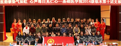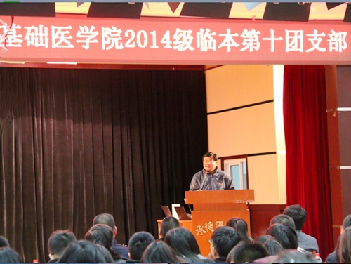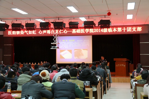 2015年11月3日到25日,为深入贯彻落实党中央对禁毒工作的重要指示,积极响应河北省禁毒办、河北省教育厅号召,进一步增强对青少年毒品预防教育的针对性和实效性,切实提高青年学生识毒、防毒、拒毒的意识和能力,基础医学院2014级临本第十团支部开展了以“‘医’韵‘禁’染气如虹 心声‘毒’白见仁心”为主题的团日活动。11月25日下午,该团支部于图书馆八楼多功能厅开展禁毒讲座。承德市公安局禁毒支队政委朱东风、禁毒支队科长庞爱忠、双桥区公安局禁毒大队教员张晓明、共青团市委学少部部长赵淑芬、副部长张大磊、学校宣传统战部部长于多珠、安全工作处副处长马超、团委副书记白江涛、基础医学院党总支书记杨凤国、副书记李欣,艺术教育教研室老师修俊雅、军事教研室老师马严、基础医学院2014级辅导员祁延伟、丁宁、周泽,以及全校近300名同学参加此次活动。 活动在嘹亮的团歌声中拉开帷幕。首先,承德市公安局禁毒支队政委朱东风同志上台进行讲座。他从毒品的种类、危害、以及如何防吸第一口等方面做了精彩讲解。讲座中穿插的毒品展示环节,将全场的气氛推向高潮。生动的禁毒宣传片将识毒拒毒的意义完美诠释。随后,诗朗诵《罂粟荒城》,悲怆的氛围中体现了毒品的危害,“请乘健康之马,挥鞭从此起程;路上春色正好,天上太阳正晴!”伴随着热烈掌声的庄严宣誓,同学们将远离毒品的誓言铭记于心。小品《外卖奇遇记》以幽默诙谐的语言和故事情节又一次强调了识毒防毒拒毒的重要性。活动最后,于多珠总结发言。他表示当代大学生要做知法懂法守法好青年,此次活动是一个窗口,吸毒制毒贩毒不仅对自身有危害,对社会、对国家的发展都有负面影响。希望广大同学洁身自律,绝不尝试第一口。 此次活动积极落实“五个一”行动,即观看一部禁毒影片,开展一次禁毒征文比赛,参观一次禁毒展览,组织一次禁毒讲座,开展一次主题班会。11月3日,该团支部面向全校同学播放了电影《毒战》,将识毒、防毒、拒毒的观念深入人心。在以“文字奥秘语言传奇”为主题的禁毒征文活动中,同学们的积极参与让“拒绝毒品”的概念进一步升华。禁毒知识海报展览活动于11月8日-10日在我校大学生活动中心一楼大厅顺利举行,同学们纷纷扫描河北省禁毒微信二维码,关注该平台,了解禁毒知识。在主题班会中,禁毒宣传片生动形象地进一步宣传了毒品的危害。 通过此次系列活动的开展,广大青年不仅学习到禁毒的法律法规,而且医学生将以医学知识宣传识毒、防毒、拒毒的方法,让更多的人受益。 承德广播电视台今日聚焦节目对此次活动进行了全程跟踪报道。