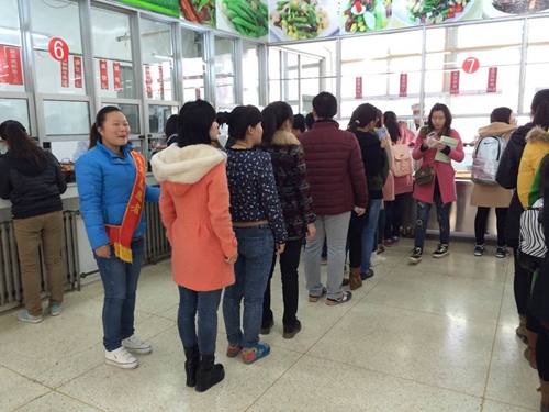 2015年3月20日,基础医学院2012级影本第二志愿服务队在学校学二食堂开展了以“讲文明,讲礼让――让排队成为一种习惯”为主题的青年志愿者活动。 同学们在食堂就餐时间较为集中,就餐人员较多,造成打饭秩序较差。为此,该志愿者服务队与学二食堂负责人协商,组织了一次维持食堂秩序的活动,以提高同学们的自觉性。3月20日上午7点,在学二食堂,每个刷卡机器旁都站有一名佩戴青年志愿者绶带的队员,提示大家按秩序排队买饭。 本次志愿者活动,旨在让同学们养成自觉排队打饭的习惯,改善餐厅的就餐环境,懂得对效率的合理追求和对他人权利的尊重。基础医学院2012级影本第二志愿服务队表示将继续开展该志愿服务,带动全校同学把文明排队作为一种习惯,为建设和谐、文明校园贡献自己的一份力量。