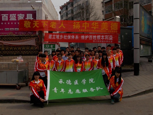 2015年3月27日上午,为弘扬孝道精神,中医学院2014级中西医临床第二志愿者服务队在承德市西大街社区举办以“敬天下老人 扬中华美德”为主题的志愿者活动。 活动开始志愿者为市民献上充满活力的舞蹈表演,激发了观众的热情。“治未病”教研室主任李静华教授为大家做了精彩讲座,她提到:“我们需要关注身边每一位老人,让他们心情愉悦,不感到孤单”,同时她向大家介绍了许多关于健康的问题。此外,志愿者一小组到一位空巢老人家中,为老人送去了温暖。志愿者们陪老人聊天,帮忙做家务,得到了老人表扬。志愿者二小组在小区中清理小广告,为居民创造了干净和谐的环境。 活动表现了志愿者积极昂扬的精神风貌,提高了志愿者乐于助人、尊老爱幼的高尚品质。为老年人营造了温馨舒适的生活居住氛围。