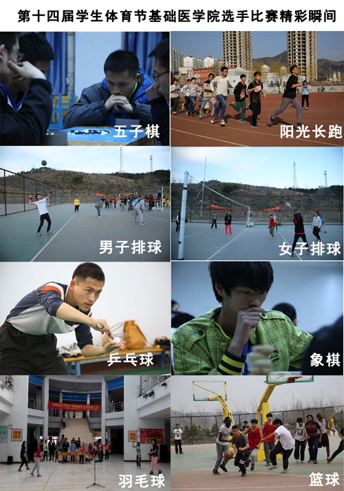 为积极响应“每天锻炼一小时,健康工作五十年,幸福生活一辈子”的现代健康理念和“三走”活动的号召,切实推动阳光体育运动的广泛开展,吸引广大青少年学生走向操场、走进大自然、走到阳光下,基础医学院2013级党支部在各级领导的支持及公体部老师们的指导下,自2014年10月至今,组织全体学生开展以“师生同乐 共享健康”为主题的阳光体育系列活动。 张开双臂,拥抱春天与梦想;放松心情,体验生活与美好,每天9:42分,基础医学院2013级全体同学在党支部书记付俊贞老师和组织委员李庆林老师的带领下,按照固定的位置和学号依次排开,整齐划一地做起了课间操,老师和同学们的动作标准、有力、优美,每个动作中无不充满着属于青春的朝气与活力,吸引了大批留学生和其他院系的学生的目光,成为每天承医最亮丽的一道风景线。 和着激情而变化的旋律,伴随着队员们优美的舞姿,基础医学院2013级的团体操队员们每天准时出现在操场中央排练,优美的交际舞、激情的小苹果是师生活力与激情的展示,那优雅的彩带舞是对母校建校70周年的美好祝愿,这里有辅导员老师和组织者辛勤的汗水,有全体队员积极的配合与支持,只为在运动会开幕式上绽放出属于基础医学院的风采,舞出我院学子对母校建校70周年的美好祝愿! 四月的阳光轻柔,蓝天白云,婀娜多姿,各个班级积极响应党支部的号召,组织形式多样的阳光体育运动,如激烈的足球赛、撕名牌大战、毽球羽毛球赛、拔河比赛等一系列趣味运动,全体同学乐享其中,积极运动,本年级在校阳光体育比赛中荣获第三名的佳绩。自学校体育节开幕以来,全年级同学积极参与,16名同学报名参加了阳光体育长跑活动,其中临本10班张远航同学取得男子组第一名的好成绩,其他同学也在各项比赛中荣获佳绩,为本院在体育节中赢得了开门红。 本次阳光体育系列活动由党支部组织,师生共同参与,激发了当代大学生参加体育锻炼的主观能动性,形成良好的体育锻炼习惯,提升身体素质,磨练坚强意志,活跃校园气氛,凝聚师生友情,在全校范围中营造人人乐享运动,阳光快乐行走的健康生活风尚。