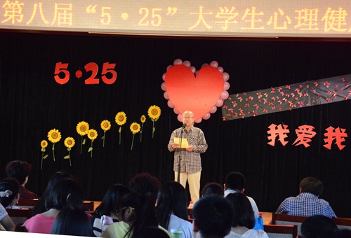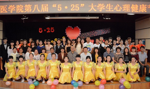 2015年5月25日下午,我校心理学系在图书馆八楼多功能厅举办了以“勿忘初心,寻爱之本;择心所向,与子偕行”为主题的第八届“5•25”大学生心理健康节汇报演出。学院党委书记刘永平、党委副书记张东旭,宣传统战部部长于多珠、学生工作部部长沈浩、基础医学院党总支书记杨凤国、生物医学工程系直属党支部书记许士奇、心理学系主任杜玉凤、心理学系直属党支部书记吴杰、团委副书记白江涛以及各院系辅导员老师等参加了此次活动。近三百名学生观看了演出。 健美操表演《Fly yong》的热烈氛围感染了整个会场,拉开了此次活动的序幕。随后播放的一段视频,带领大家一起回顾了第八届“5•25”大学生心理健康节系列活动的精彩瞬间,并献上了对母校七十周年的祝福。一曲活泼动感的《Today》点燃了青春的激情;歌舞表演《落花情》博得在场的观众的阵阵掌声;《心灵是一颗会开花的树》则以朗诵的形式阐述了心灵美的深层含义。 张东旭为本次演出致辞,对心理学系为全方位加强我校大学生心理健康水平做出的贡献予以肯定,并希望借助心理健康节这一载体,使全校师生共同关注大学生心理健康,用爱和包容、知识和友善塑造美丽健康的心灵。最后,樊玉龙、于博鑫与心理系舞蹈队一起带来的歌伴舞《站起来》为此次活动画上了圆满句号。 自2008年我校心理学系举办第一届心理健康节以来,心理学系已连续成功举办了7届大学生心理健康节。大学生心理健康节已成为我校的特色学生活动之一,在宣传普及心理健康知识的同时为学生搭建起了锻炼心理品质、提高心理素质的平台,为全方位的加强我校大学生的心理健康水平做出了应有的贡献。 本次活动在张东旭副书记向广大师生发出的关注心理健康的亲笔信和心理学系向全校师生发出的《倡议书》中拉开帷幕。在过去的一个月中,除了举办心理健康专题讲座、团体心理辅导、心理学电影展播、心理测验、心声说给你听、心理学主题征文等传统活动外,还增加了挑战心理九宫格、箱庭体验、“奔跑吧 Buddy”等形式新颖的活动,参与学生人数达3000余人,在普及心理健康知识的同时,又增强了同学们的心理保健意识和自我调节能力,优化了大家的心理素质。