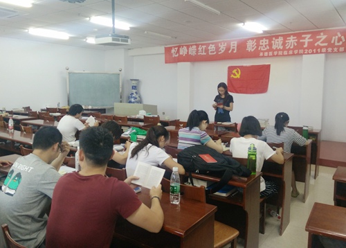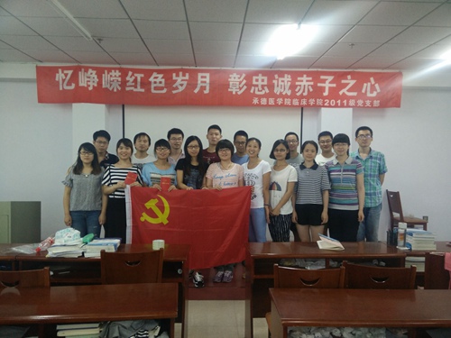 2015年7月1日是中国共产党建党94周年纪念日,为纪念建党94周年,积极响应省委组织部、省委宣传部以及我校党委和上级组织的号召,强化学生党员党性观念,严肃党内生活,进一步增强党的凝聚力和战斗力,我校临床学院2011级朝阳见习党小组在朝阳中心医院13楼会议室成功举办了以“忆峥嵘红色岁月 彰忠诚赤子之心”为主题的党日活动。 在党小组组长的带领下,所有学生党员在鲜红的党旗下,紧握右拳,庄严宣誓。铿锵有力的誓言一字一句刻入党员心中,不仅使同学们坚定了入党的决心,更多了一份对党的崇敬。之后,全体党员围绕党章新亮点,结合发展趋势,对党章进行了逐字逐句系统的学习,并积极关注了“共产党员”和“河北党员教育”公众号,将党章的学习纳入日常生活中来,推动党章学习的常态化。最后,全体与会人员一同观看了党史教育片《建党伟业》,通过回顾革命漫漫峥嵘征程以及革命先辈历经险阻的奋斗历程,重温党的光荣历史,党员们深有感触:从中国共产党自身的茁壮成长到中国共产党领导全国人民取得举世瞩目的成就,无不说明了“没有共产党,就没有新中国”这一铁的事实。 通过这次活动,学生党员们纷纷表示更加坚定了共产主义信念,今后会更加自觉地弘扬党的优良传统,坚定党的领导,深刻领会习总书记系列重要讲话精神,努力践行“三严三实”要求,将个人发展同集体发展,社会发展紧密结合起来,始终牢记入党誓词,发挥先锋模范作用,为党旗争辉。