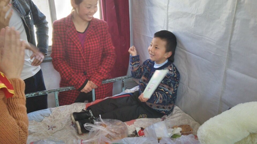 2016年3月18日上午,生物医学工程系“温暖折翼天使,关爱残疾儿童”项目小组成员赵爱虎、郝媛媛等8位同学到隆化县去看望了可爱的小昕硕,并为他带去了书籍、玩具等慰问品。 2015年11月13日,我系成立“温暖折翼天使,关爱残疾儿童”公益项目,旨在为提高大学生对残疾预防的认识,预防残疾,促进健康,促进残疾儿童“无障碍”地融入社会生活。在项目开展中,志愿者们获知在承德医学院附属医院进行治疗的四岁于昕硕小朋友,因为脑炎导致下肢瘫痪,而且家境贫寒,父母不得不终止后续的康复治疗和更换支具。于是大家通过生工万象微信平台在朋友圈、QQ群进行广泛的宣传报导,引起了社会和学校各部门的关注,志愿者们尽其所能,通过不同的方式为小昕硕筹备善款,共计14881.2元,为其一家送去了温暖。 今年志愿者们再次见到了小昕硕和他的妈妈,他们租住在隆化县医院旁边一间简陋的屋子里,生活很是艰苦,每天只能吃两顿饭。尽管如此,坚强的妈妈和小昕硕仍对生活充满了希望,小昕硕见到生工系志愿者哥哥姐姐时,没有了初次见面的害羞、胆怯,愉快地和志愿者们说着生活的点点滴滴。志愿者们同小昕硕一起画画,做游戏,孩子的脸上充满了欢快的笑容,妈妈表示,小昕硕已经很久没有这么高兴了。 通过这次活动,志愿者们看到了小昕硕生活的窘迫和无奈,均表示会尽项目组织最大的努力给予小昕硕生活、治疗上的帮助,帮助他快乐成长。
