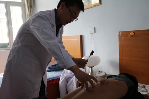 志愿者们为老人拔罐