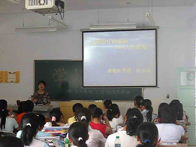 2008年6月12日下午2:00心理学系举办了题目为“心理治疗的基础――人性解剖”专题讲座,由心理系主任杜玉凤教授主讲,心理学系全体师生百余人参加了此次活动,教室内座无虚席,气氛活跃。