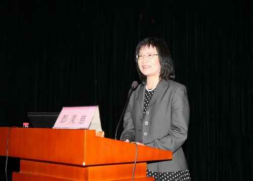 座谈会后,彭院长参观了我校护理系,并与护理系教师代表进行了交谈。10点30分,彭美慈院长在图书馆八楼多功能厅做了题为“实践2009世界卫生组织的护士培训标准:机遇与挑战”的精彩报告。报告会由护理系单伟颖主任主持,护理系全体教师、附属医院同仁、基础部部分教师及各年级学生代表参加报告会。彭院长的报告站在世界护理学前沿的角度,开拓了与会者的视野,增长了见识,明确了世界卫生组织目前提出的护士培养标准及核心能力。
