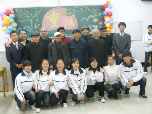 老干部们在年级老师及部分团员的陪同下参观了承医美丽的校园,并了解到承医的历史和近些年的发展情况。之后团支部全体团员与老干部们欢聚一堂,在教学楼102教室举办了联谊活动。活动在吕新华政委的开场致辞中拉开序幕,他说:今天恰逢农历九月九日――传统的重阳节,又称“老人节”,首先祝老干部们节日快乐;来到承医非常高兴,看到承医这么大的变化更是对承医的明天充满期望,希望同学们踏着承医的足迹,传承好承医精神,把承医、把祖国建设的更加美好。接下来,团员们表演了精彩的节目,尤其歌曲《在太行山上》赢得了老干部们的一致好评。