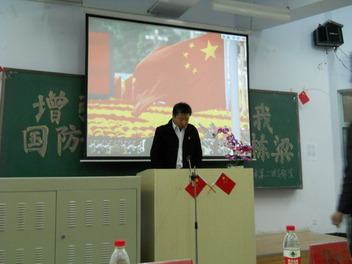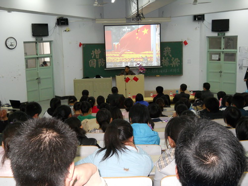 10月17日下午,08级麻本第二团支部在教学楼205教室举办了主题为“增强国防意识,做我中华栋梁”的团日活动。市文化局副局长祝好勇,市双桥区武装部副部长陈权,校团委书记沈浩,校工会主席、武装部部长王海林,军事教研室主任于群,年级辅导员郭建恩出席了活动, 200余名同学参加了此次活动。