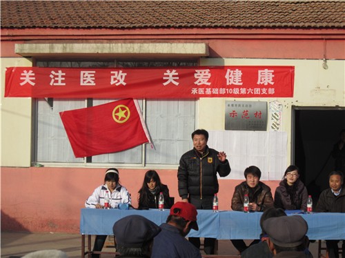2010年11月19日下午,为宣传医改知识、普及健康常识,承德医学院临床医学本科第六团支部在承德市双桥区三道河子村举办了以“关注医改,关爱健康”为主题的团日活动。活动由该团支部与三道河子村村委会及承德市卫生局“新农合”办公室联合举办,学校团委书记沈浩和校医院卫生科科长从柏林参加了活动。