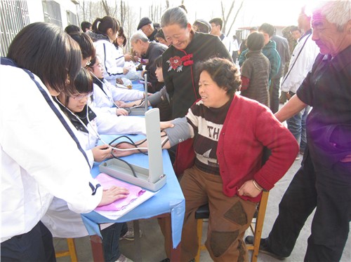 从柏林科长向村民们讲解了“新农合”的意义及日常医疗保健知识。团支部成员为村民们义务测量血压、发送药品,并配合从柏林医生进行了义诊。
