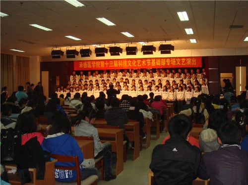 2010年10月29日,承德医学院建校六十五周年校庆暨第十三届科技文化艺术节基础部专场文艺演出在多功能厅拉开帷幕。学生处处长于多珠、基础部党总支书记李玉红、副书记梅爱敏和基础部主任孔祥玉以及各部系领导老师莅临现场,观看了整场演出。
