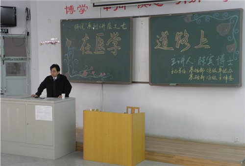 他讲到做事先做人,尤其是作为一名医学生,为人要踏实、勤奋、刻苦,切忌“投机取巧”;要在学习中找准自己未来发展的方向,然后坚持不懈,在困难中历练自己,在稳步中求得更大进步。他以自己的切身体会从读书、沟通、自身总结三个方面介绍了医学生该如何学习。建议医学生除钻研课本之外,还要广泛阅读有关文学、哲学、历史、经济学等方面的书籍,拓宽知识面;课余时间要注重与同学、老师的交流与沟通,弥补书本上的不足,进而更好的构建自己的医学知识体系;及时总结自己的学习得失,不断完善自身。最后,陈博士还为大家指出未来医学的发展方向,鼓励同学们要在做好本身工作的基础上,培养科研精神,提高科研意识,推动医学业的发展。