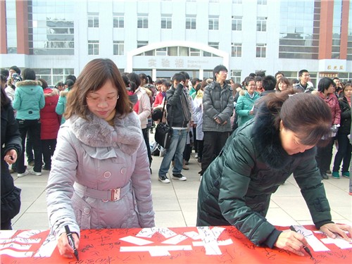 学校相关部门的领导老师参加了签名活动