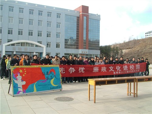 为引导、教育大学生树立尊廉崇洁、诚实守信、积极向上的崇高思想和道德情操,营造“人人思廉、人人保廉、人人促廉”的廉洁文化氛围。基础部2010级年级办公室组织学生于2010年12月8日在教学楼前广场举行“争先创优 廉政文化进校园”签名活动。