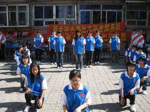 2010年9月12日上午,承德医学院中医系09级第二青年志愿者服务队在双桥区西大街街道办事处火神庙社区居委会举行了以“参与志愿服务,塑造国际旅游城市形象”为主题的青年志愿者活动揭牌仪式。共青团承德市副书记李剑�团区委副书记左文娟,及承德医学院团委书记沈浩�党委宣传部副部长于淑华等出席了活动。