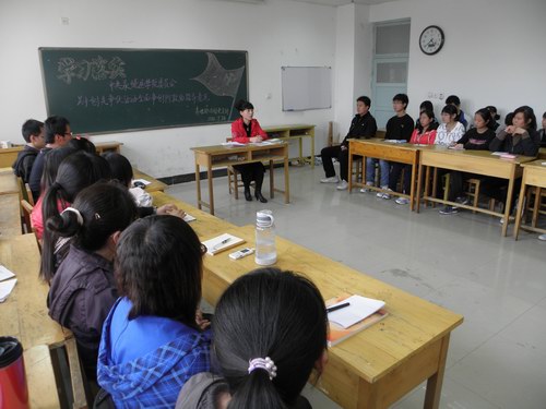 基础部2008级学生党支部书记付俊贞向大家解读学校党委文件