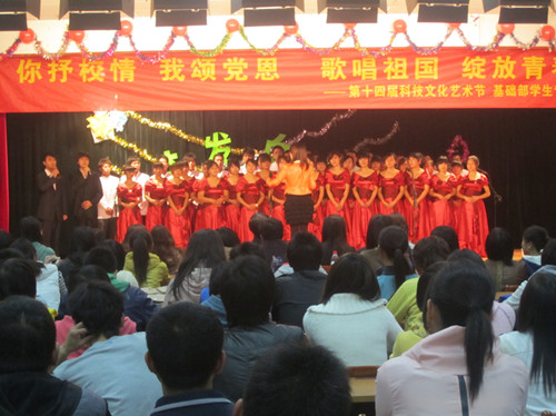 10月18日下午,基础部在图书馆八楼多功能厅举办了以“你抒校情 我颂党恩,歌唱祖国 绽放青春”为主题的学生专场文艺演出活动。党委副书记王振方、党委常委、宣传部部长赵书云以及组织部、学生处、团委、生物医学工程系、中药系有关领导出席了活动。共两百余名师生观看了演出。
