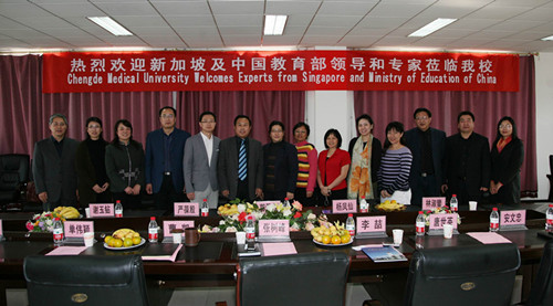 2011年10月18日,我校迎来了教育部留学服务中心李�老师及新加坡郭佩燕等一行6人的专家组。下午1:30,我校在行政楼307会议室举行欢迎仪式暨三方会谈。学校张树峰校长,曹凯副校长,教务处唐世英处长,校长办公室安文忠副主任,外事办王韫华副主任,护理学院单伟颖院长,护理学院王瑞婷副书记,涉外护理教研室雷慧主任等出席了会议。会议由校长办公室安文忠副主任主持。
