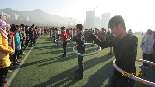 11级护理系辅导员梁迎辉老师积极组织各班投入阳光体育活动,护理本科各班开展了趣味呼啦圈比赛,涉外护理各班开展了跳大绳比赛。趣味呼啦圈比赛以班级为小组,每组八名同学参赛,以小组成员累计转的时间为标准评出奖项。跳大绳比赛共有八支队伍参加,按各队伍所跳个数评出奖项。
