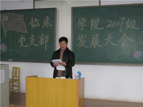 2011年3月13日,临床学院2007级党支部在教学楼211教室召开了预备党员宣誓大会。党员、预备党员、入党积极分子等二百余人参加了大会。三十三名预备党员庄严宣誓,表达对党的忠诚,以及践行誓言的坚定决心。