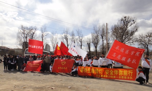 2010年我省道路交通事故共造成1506人死亡,3692人受伤,直接财产损失1090万元,交通现况十分紧迫!为缓解交通压力,保证行人安全,承德医学院10级临本第一志愿者服务队联合承德交警一、二大队、承德石油高等专科学校、承德护理职业学院、河北民族师范学院,于2011年3月26日下午2点半在承德德汇门开展了以“等待生命绿灯,安全伴你前行”为主题的志愿者活动。党委宣传部副部长于淑华、交警二大队教导员张洋等领导出席了本次活动。