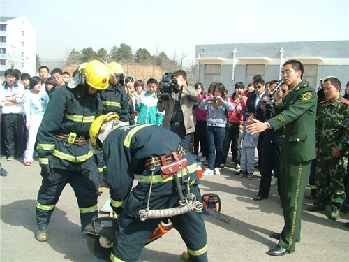 4月9日上午,在十四号宿舍楼前,由校学生会团支部、基础部、保卫处共同组织,承德市消防支队开发区中队参与协助的以“防患于未然、临危而不乱、消防在行动”为主题的大型消防演练及安全培训活动吸引了众多老师学生的参与。