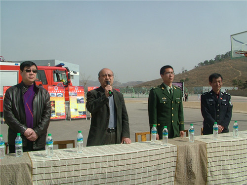 学校党委副书记张东旭亲自莅临现场指导,保卫处处长郑永维、基础部党总支书记李玉红、副主任周晓慧、副书记梅爱敏等领导也出席了本次活动。学校保卫处郑永维处长致词,他指出,举行此次消防演练活动的目的就在于提高师生的消防安全意识、培养自救逃生技能。承德市消防支队开发区中队指导员高阳就火灾出现时应如何逃生进行了细致的讲解。