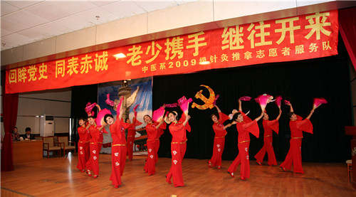 | 回眸党史 同表赤诚 老少携手 继往开来——中医系2009级针灸推拿志愿者服务队举办志愿者活动 | ||||||||