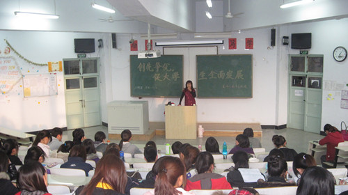 讲到创先争优的内涵时,赵部长向同学们介绍了创建先进基层党组织的具体要求并提出我校创先争优的落脚点应是育人即培养全面发展的人才。她还具体阐述了共产党员党性修养的定义及基本内容:理论修养、政治修养、思想修养、科学文化及专业知识修养、组织纪律修养、党的作风建设修养。她指出:作为一名共产党员要站在党性原则上创先争优,要在本职岗位上创先争优,要在服务大局上创先争优。