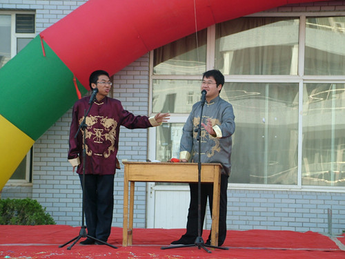 演出正式开始,由师院学生们带来的肚皮舞以其优美的舞姿和新颖的编排带动了全场观众的情绪,由我校心理系08级同学带来的歌曲《不想长大》婉转动听,博得了阵阵掌声。由师院李佟等带来的传统相声《你要爱传统》将开幕式的气氛推向了高潮,表演者用深厚的相声功底,幽默诙谐的语言,彰显了传统相声的独特艺术魅力,现场笑声不断。最后,在T台秀《绚丽青春》轻松愉快的氛围中此次开幕式落下了帷幕。