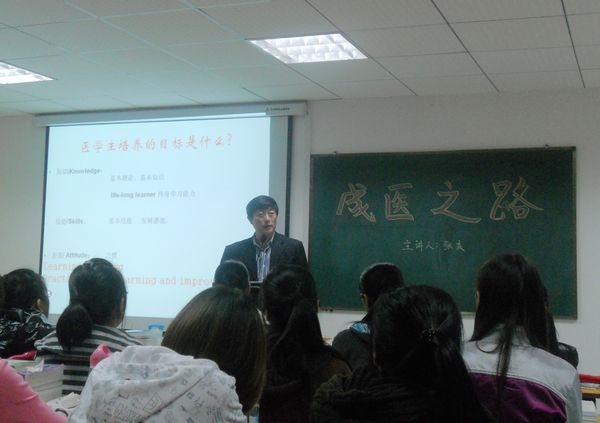 附属医院副院长张庆教授做了名为“成医之路 我们前后相继”的讲座