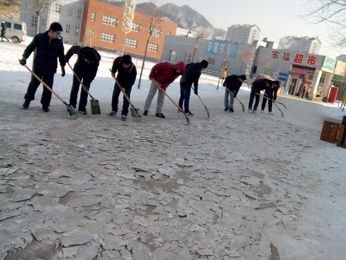 近日低温降雪,道路上的积雪在路面上结了厚厚的一层冰,路面光滑难行,导致师生出行不安全,不仅增加了校园的安全隐患也影响校容校貌。12月24日中午,生物医学工程系六十余名志愿者带着铁锹、扫把、铲子等工具分成三个组,分别对学生7公寓到学生二食堂间的三段路面进行了全面的铲雪除冰活动。经过一个多小时的奋战,志愿者们为师生铲出一条宽敞安全的通道。志愿者们纷纷表示,这样的志愿者活动不仅让大家体会到劳动的快乐和助人为乐的幸福感,也让使大家从中学会了自觉的奉献精神和参与社会活动的责任感,精神境界得到升华。