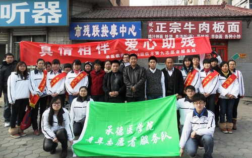 12月3日是“国际残疾人日”,今年国际残疾人的主题为“共建更美好世界,造福全民,造福参与发展的残疾人”。为了响应政府和社会号召,发扬志愿者服务精神,我校临床学院2009级第九志愿者服务队开展了主题为“真情相伴,爱心助残”的志愿者服务活动。