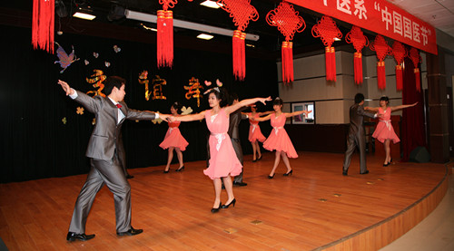 为继承传统医学文化,展示国粹中医魅力,2012年3月19日下午3:30 ,承德医学院中医系第三届“中国国医节”开幕式暨交际舞大赛在学校多功能厅隆重举行。学生处于多珠处长、中医系党总支梁广和书记、李晓杰副书记、中医系副主任杨志新教授、中医系辛丽娟老师、团委夏艳华老师莅临现场指导并担任大赛评委。同时其他系部领导及中医系的老师们也出席了开幕式现场与同学们共度节日。