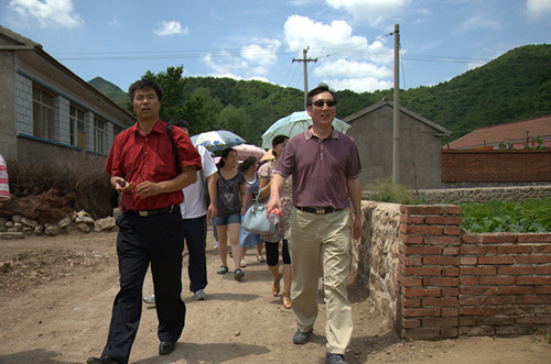 7月14日,实践队伍来到我校驻村工作组所在的宽城县龙须门镇榆树沟村,经过近一个小时山路的颠簸,队员们终于走进了这个贫困的小山村。据我校驻该村工作组负责人李凤新介绍,该村属于宽城县县东贫困区片,村民经济收入以农业畜牧业为主,由于山多地少,自然资源贫乏,交通不便等原因,该村年人均收入只有2300元左右,按国家制定的标准划分属贫困村,人们生活水平较低,医疗卫生设施相当落后。前不久我校针对村民就医困难、医疗卫生意识较弱等问题开展了送医送药下乡活动,为村民们送来价值3、4千元的常用药品,并开展义诊体检等活动,全村600余户村民积极就诊,活动深受村民好评。我校驻村工作组在驻村期间积极帮助村里出谋划策、寻求发展出路,已经初步形成思路,并逐步付诸实施。今后还将计划修建完善一系列的卫生设施、交通设施等,改善村民生活条件。实践队送上了队员们为支援村建设自发捐献的4300元捐款,进献一份绵薄之力。随后,大家参观了村里作为主要经济来源的獭兔养殖厂、香菇培育基地、制种基地,由于正值制种关键时期,村里劳力每天早出晚归深入田间劳作,极其辛苦。在返程途中,大家陷入如何带领该村脱贫致富的思索之中。