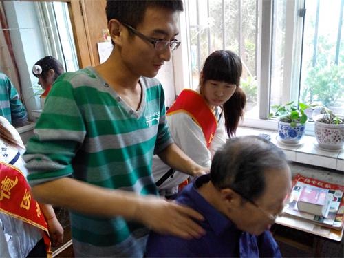 为了增强当代大学生关爱老人的意识,让老人们在晚年能感受到社会人士给与的温暖,享受天伦之乐,2013年10月12日,护理学院2011级本科第三团支部在小佟沟社区举办了以“空巢不空心”为主题的团日活动。活动中,同学们帮助老人收拾屋子、打扫卫生、与老人谈心、给老人按摩、为老人宣讲养生保健知识,气氛温馨融洽。最后同学们还与老人们一起唱红歌,愉悦的气氛让老人们笑逐颜开。