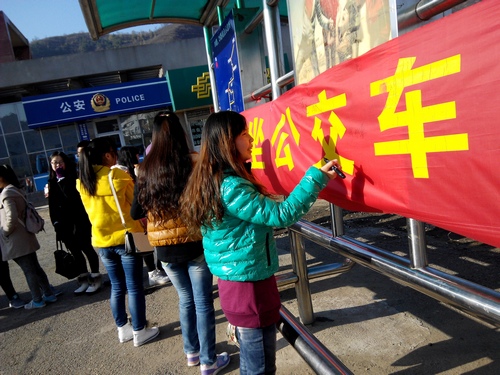 为改善公车站点候车秩序混乱、上车拥挤等状况,提高大学生的自身素质、呼吁更多的人文明乘车,10月19日、20日和26日、27日,基础医学院2011级影本第一青年志愿者服务队连续两个周末在我校公交站点处举办“礼让乘坐公交车 我与文明同路行”为主题的青年志愿者活动。