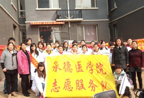 3月17日,承德医学院中医系2010级中西医第一志愿者服务队举办了主题为“学雷锋迎五四,倡文明树新风”的志愿者活动,为承德市常王府小区的居民带去志愿者们的一份爱心。志愿者到达小区后受到了小区工作人员的热情接待,同学们稍作休整后,便投入到工作中。